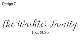 - Date (Est. 2025, 01.01.2025, est. 1/1/25, etc.) or "no date" if you do not want any date included in the design